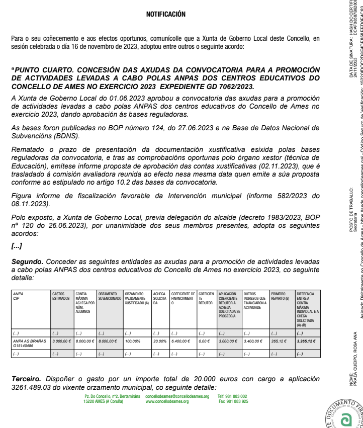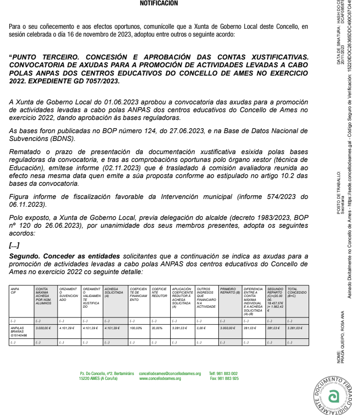 Con data 20/11/2023 e 24/11/2023 recibimos a resolución de concesión das axudas para ANPAS do Concello de Ames relativas aos exercicios 2022 e 2023 respectivamente.